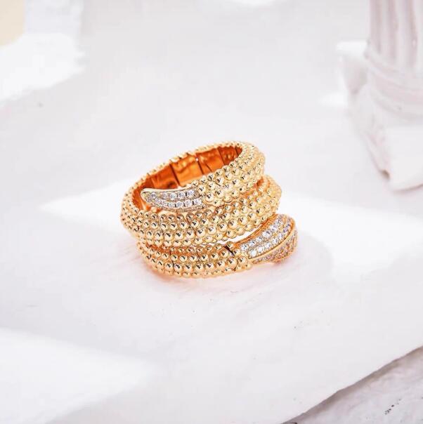 The Lotteds Bob Snake Viper Ring is a mesmerizing and unique jewel that embodies endless metamorphosis and magnetic attraction. Crafted in lustrous Champagne Gold, the ring showcases an audacious design where the snake’s body is artfully constructed from mobile gold beads, lending a tactile appeal and dynamic movement. The hypnotic serpent's head is elegantly set with dazzling Moissanite pavé, creating a striking contrast and luxurious sparkle. This distinctive piece merges bold craftsmanship with deep spiritual meaning, symbolizing unique taste and self-assured status.